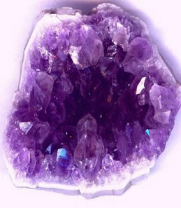 É um quartzo de cor vileta cujo tom se deve a quantidade de titânio, ferro e manganês que contem. Pode ser encontrada em diferentes tons, do mais claro ao mais escuro. A ametista de cor mais escura e que quase vai do violeta ao vermelho é a mais poderosa que existe. É o símbolo da sinceridade. O seu nome vem do grego “Amethistos” que significa “não bêbado”. Os gregos acreditavam que essa pedra os protegia de feitiçaria, nostalgia, maus pensamentos, embriaguez e da penetração dessas forças no espírito. Acreditavam também podia transformar maus pensamentos em otimismo, libertando-os de falsos amigos. Para quem pretende mudar o modo de ser, transformar completamente a vida, esta é a pedra mais indicada. Outro fundamente é a cor violeta que é a cor da mudança; possibilita fazer com que o negativo passe para o positivo. Na terapia dos cristais a ametista entra como tranqüilizante e faz com que a pessoa tenha mais lucidez.